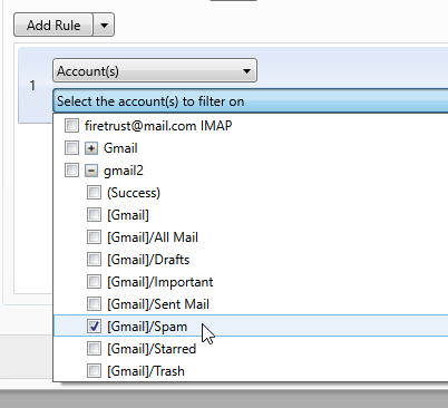 From the new drop down, select your Gmail account and put a check mark in the Spam folder