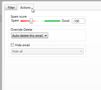 - Filters: You can create a spam filter and give it a score between -1 and -200